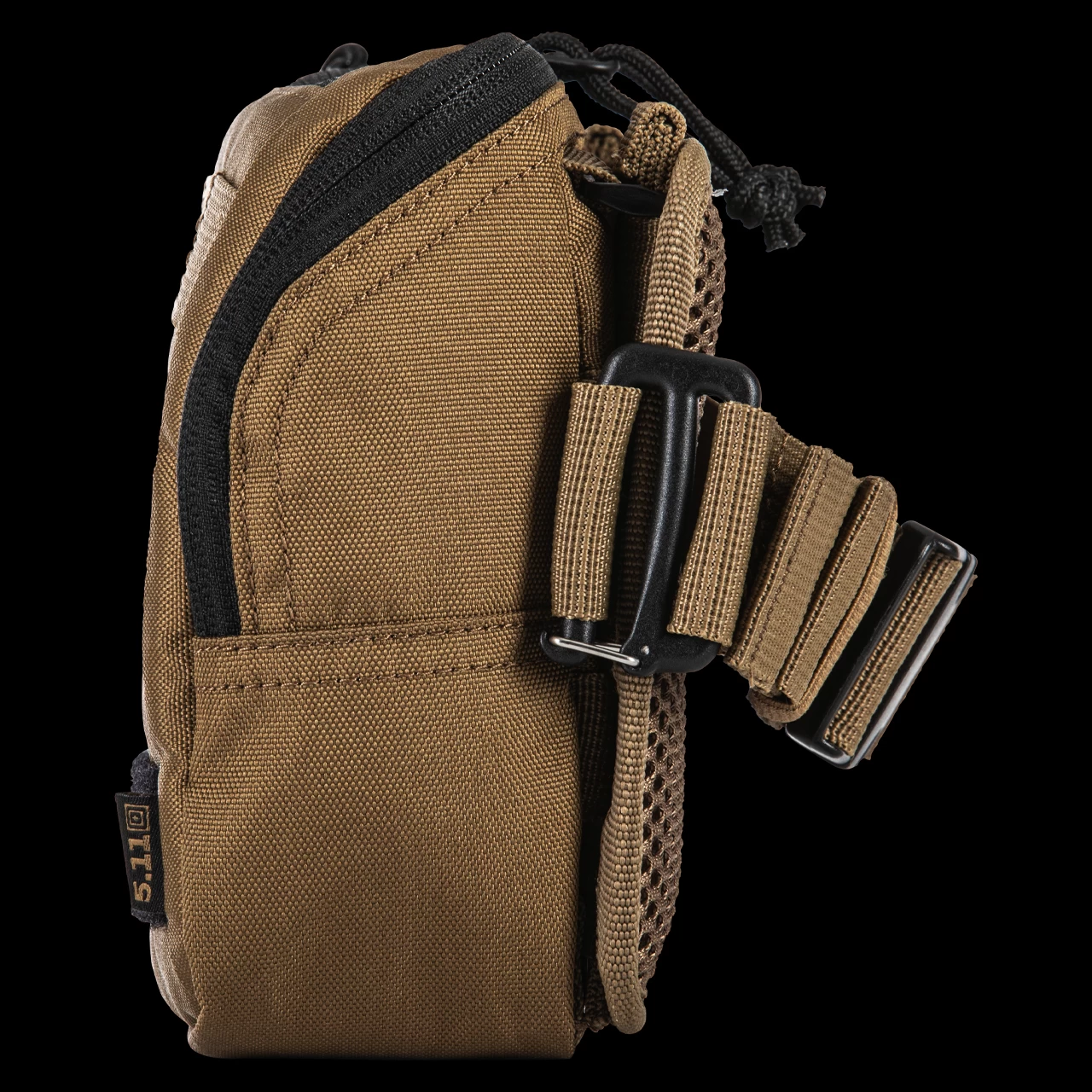 Versatility and speed are the name of the game with the 5.11 Rapid Waist Pack. This pack is ideal for grabbing essentials and critical gear when time is of the essence. It can also attach to the other Rapid Packs and other MOLLE platforms by simply removing the back pad to expose its SlickStick® system. Capable of waist or crossbody carry, its main zipper is up front, with another internally securing a mesh pocket. An internal loop panel allows concealed carry or hook-and-loop attachment of accessories.