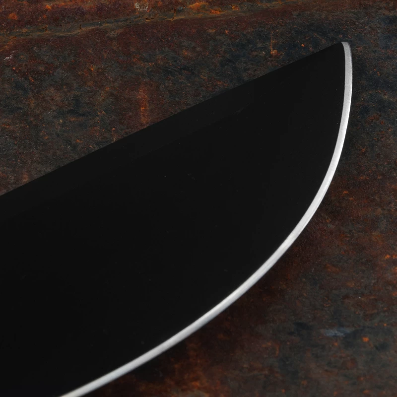 The Kuk has a full-tang Kukri inspired recurve blade made from 65 Mn Carbon Steel with a black powdercoat finish. The secure grip double injection moulded handle feels secure in the hand, and the whole is set off with a nylon sheath.