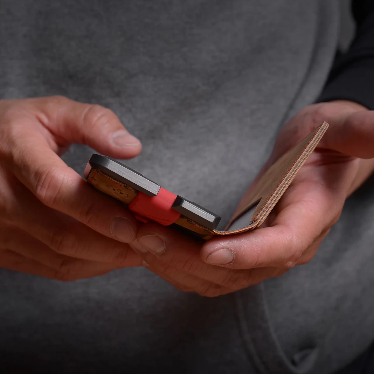 - Genuine leather – Silicone wallet band – Anodized aluminum wallet frame – Stainless steel screws