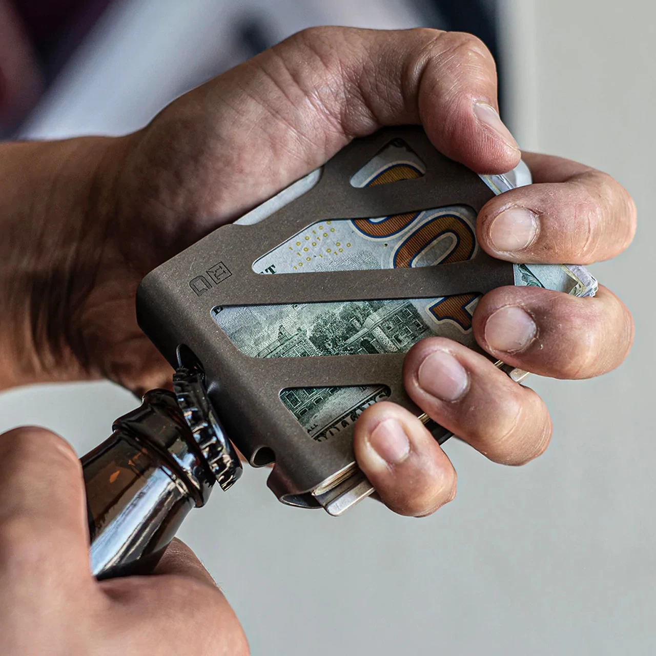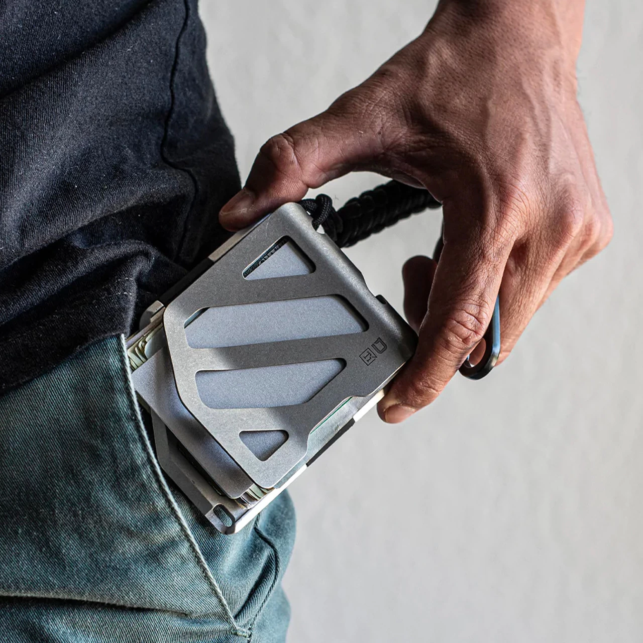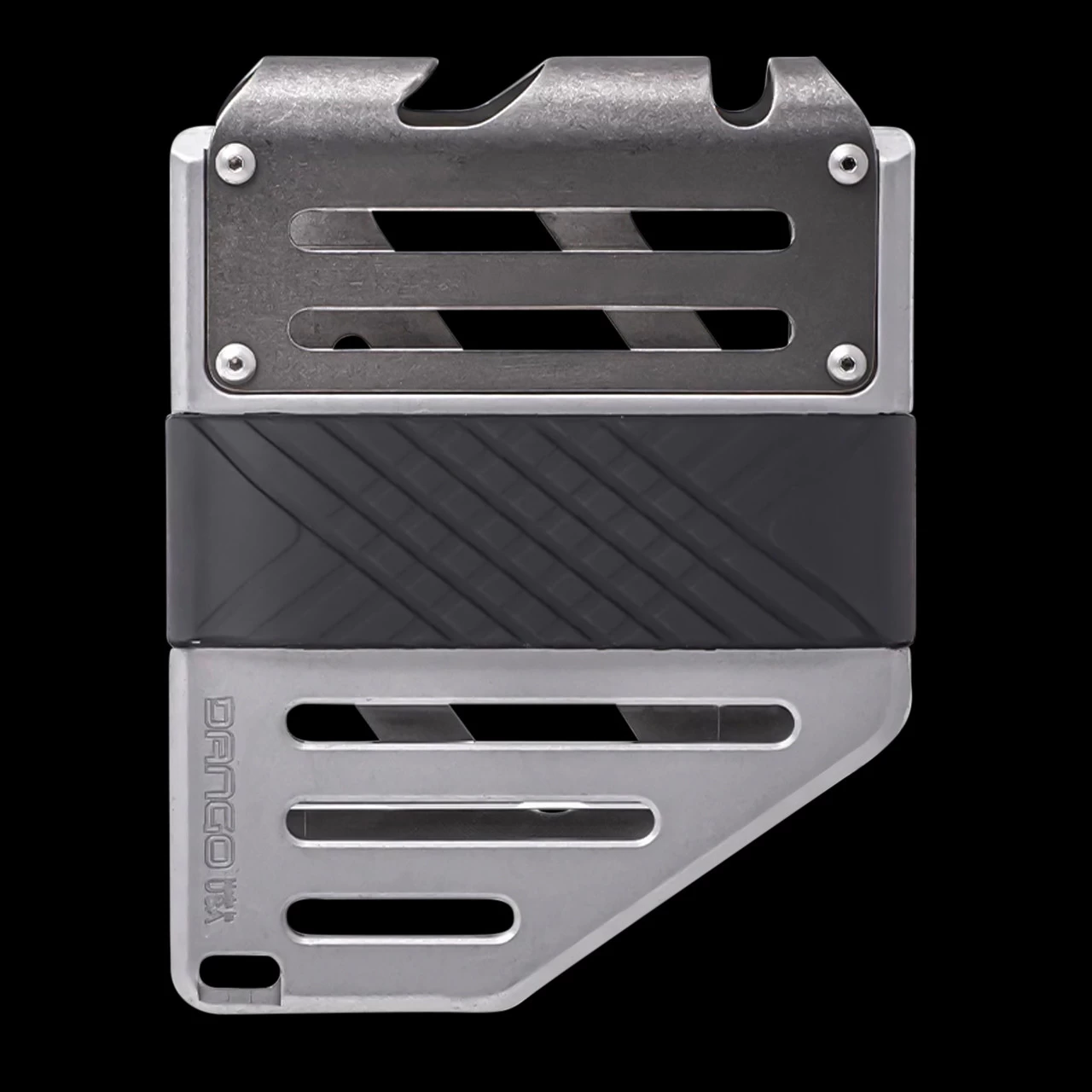 Introducing the Dango MC01 Titanium Money Clip – a light-weight, robust money clip that will not only allow you to carry large amount of bills, but also comfortably store your cards and even more cash with a secondary silicone band to keep your pockets organized. The MC01 consists of 2 metal parts; a high strength titanium clip which is bolted to a CNC machined, 6061 aerospace aluminum chassis. The silicone band hugs the body of the chassis allowing the extra storage space or to separate big bills from your smaller bills. The titanium clip is extremely agile, being able to flex and carry up to 50 bills and retract to securely hold as little as only 1 bill. The silicone band will carry additional cards and cash, up to 10mm in thickness – that equals to about 30 extra bills or 10 plastic cards. The MC01 also has a built in bottle opener on the titanium clip to give you a satisfying pop of a bottle cap. It also has 2 attachment points (one on the top of the clip and one on the bottom of the chassis) to allow you to attach your keys, tethers or EDC paracord lanyards.