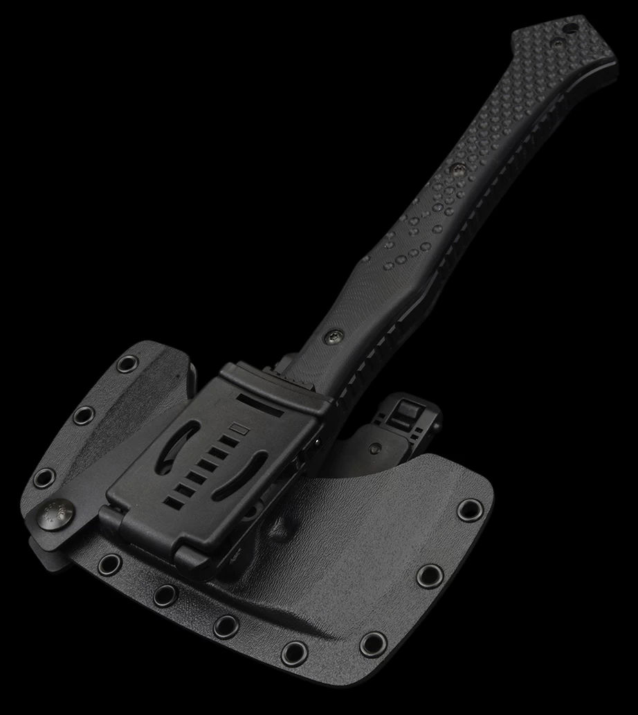 Unique to the CBA is a dual edge cutting head with sharp cutting edges. The CBA’s strong pommel incorporates a large lanyard hole for the attachment of a carabiner or rope lanyard, whilst the G10-clad, 3D-CNC machined handle has been designed for multiple handhold positions to suit single or double-handed use.