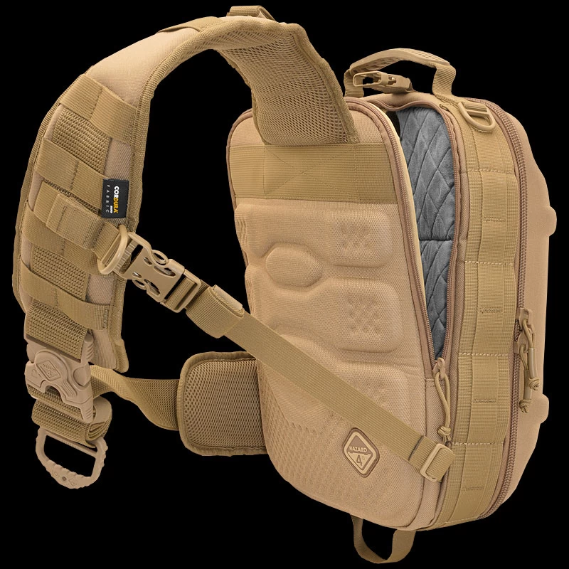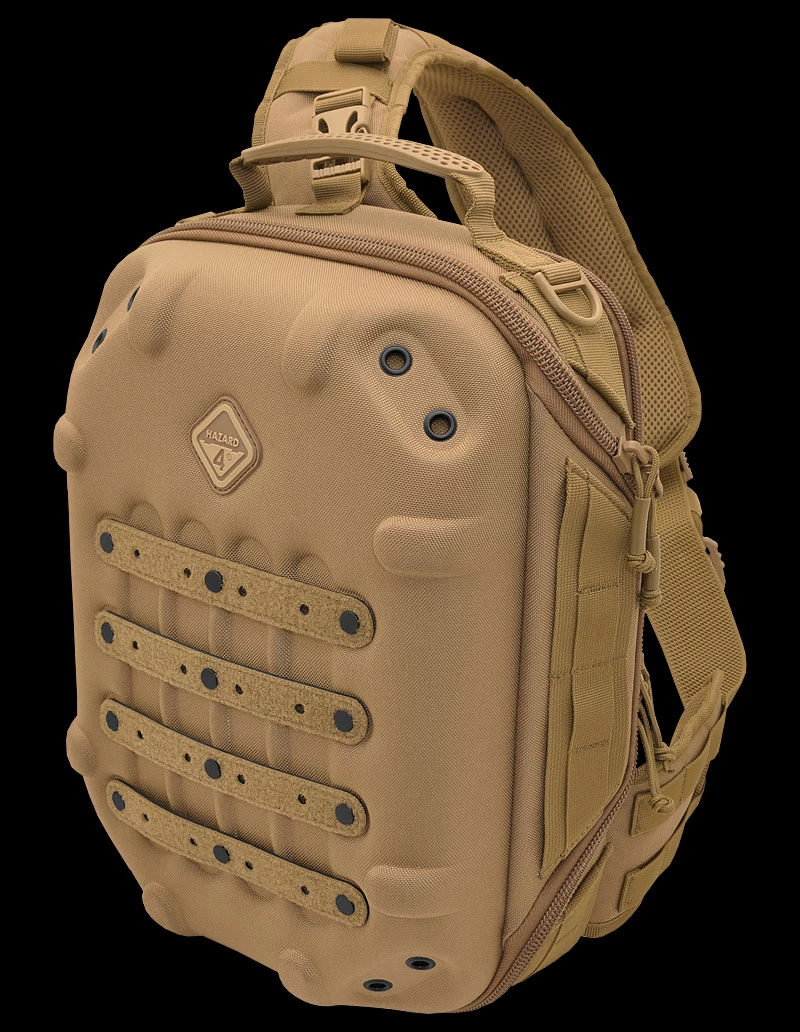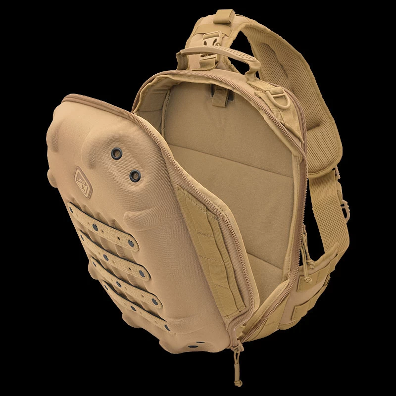 Molded-foam and 360° padded walls protect gear, and support external load mounts. A sling configuration allows sliding from back to chest for fast access. The Hazard 4 Hibachi 15L is slimmer and lighter than the similar Grill shell-pack for increased mobility at lower cost. This also makes it ideal for motorcycle use since it guarantees aerodynamics and on-seat bag access.