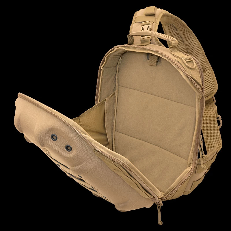 - Multiple MOLLE webbing for pouches, etc. on sides, main strap & hip pad