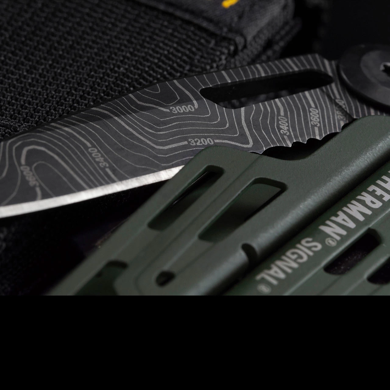 A perfect fit for any adventure, the Leatherman Signal combines 19 useful tools into a compact, 4.5 inch size. This multi-tool readies you for the unexpected with its fire-starting ferro rod, 420HC combo blade, and emergency whistle. Tighten gear with the customizable bit driver and anchor your tent stakes with the built-in hammer. A topographical map design is laser-etched into the knife blade. Gear up and go further with the Leatherman Topo Signal. Nylon sheath included.