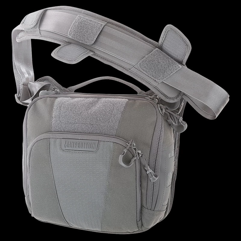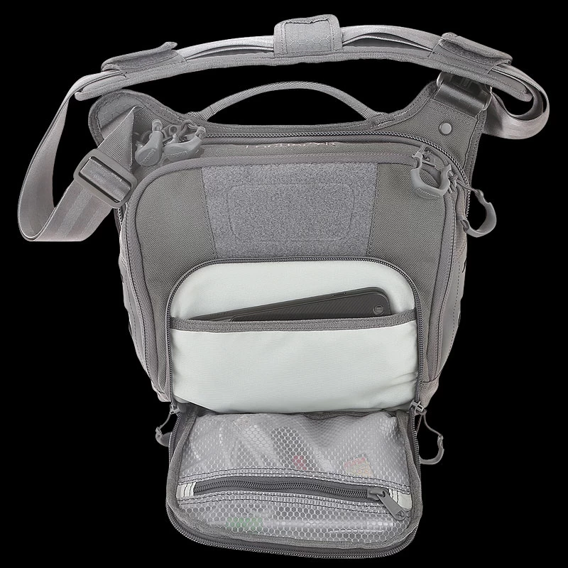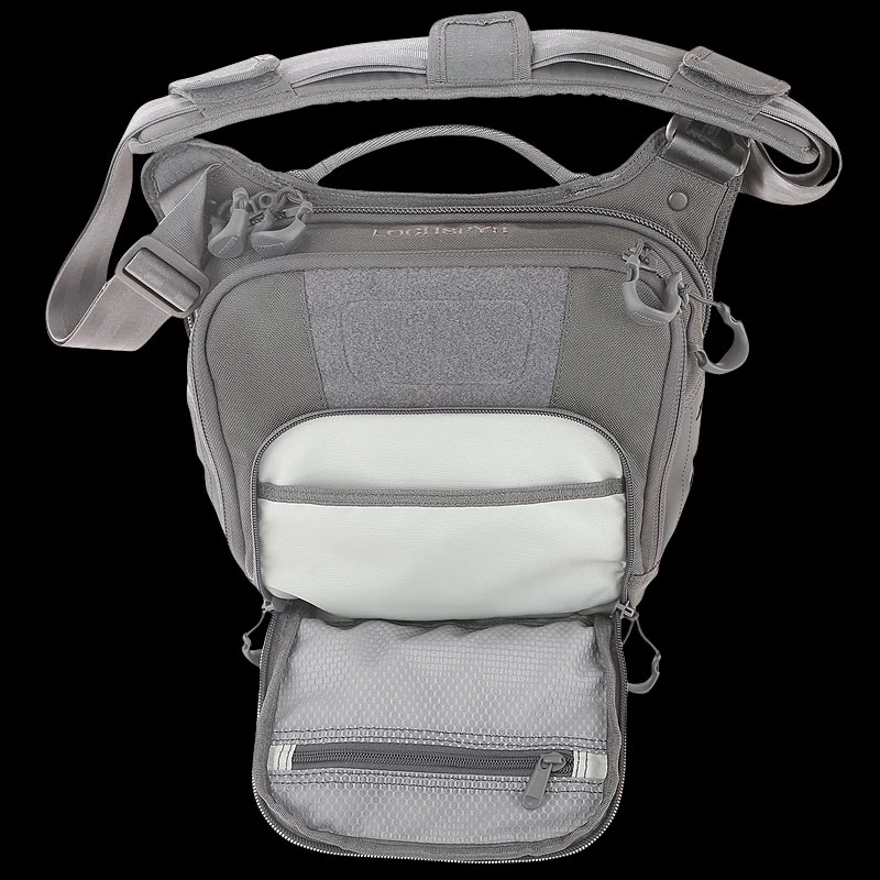 The Maxpedition LOCHSPYR (pronounced “LOCK-SPIRE”) is a crossbody shoulder bag optimized for carry. The rear CCW compartment is fully loop-lined and has an 16 inch U-shape zipper opening. The main compartment has a padded pocket sized to fit most tablets. There is an adjustable reinforced seatbelt webbing shoulder strap with quick release buckle and padded shoulder pad.