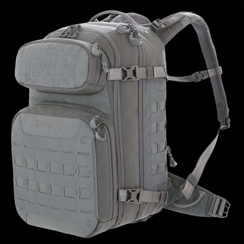 To balance the 30% increase in capacity, a padded load-bearing waist belt is added for comfort. Larger size also translates to more exterior AT.tachment LA.ttice S.ystem (ATLAS) surfaces for modular addition of specialized accessories such as admin, first aid or hydration pouches. In Maxpedition’s quest to build the best mid-sized zippered frameless pack possible, they use heavy duty materials, top quality components and reinforced construction methods to exceed the requirements of the most demanding military and law enforcement applications, thereby also satisfying the needs of adventure travelers and prepared citizens.