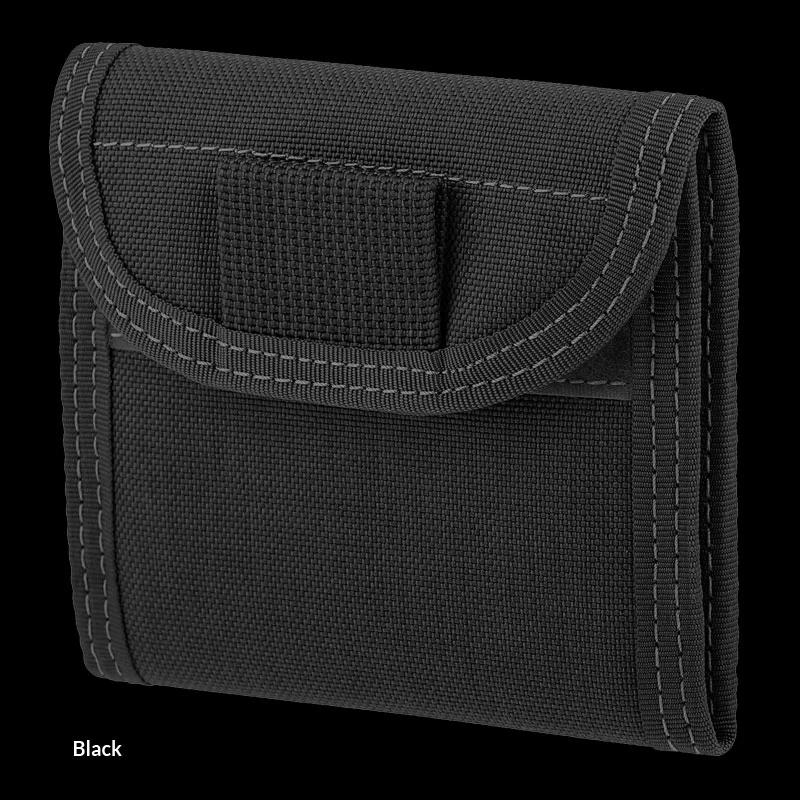 Holds each pair in separate compartments; pull one pair out at one time.Overall size empty 4½” wide x 4″ high x ½” thick Hook and loop lid closure opens with oversized pull tab MOLLE compatible Attach using two 3″ TacTie Attachment Straps (optional accessory not included) May be worn horizontally on belt 1000-Denier water and abrasion resistant light-weight ballistic nylon fabric Teflon fabric protector for grime resistance and easy maintenance Triple polyurethane coated for water resistance High tensile strength nylon webbing High tensile strength composite nylon thread (stronger than ordinary industry standard nylon thread) Internal seams taped and finished Stress points double stitched, Bartacked or “Box-and-X” stitched for added strength