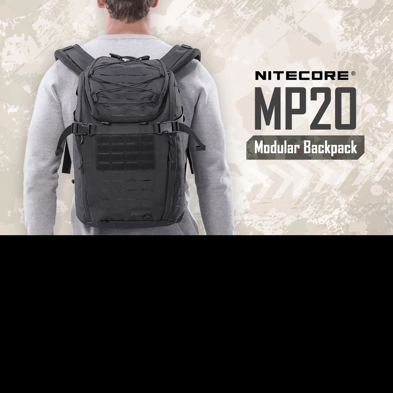 Featuring frontal and side cut Molle compatible strips, the MP20 can be added to at the various attachment points. The Nitecore NUP10 and NUP20 pouches are an ideal addition to the pack and can easily be attached to the front or side to increase storage space.