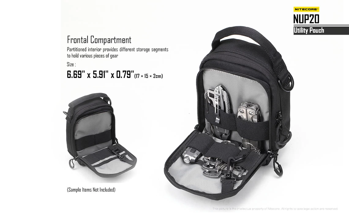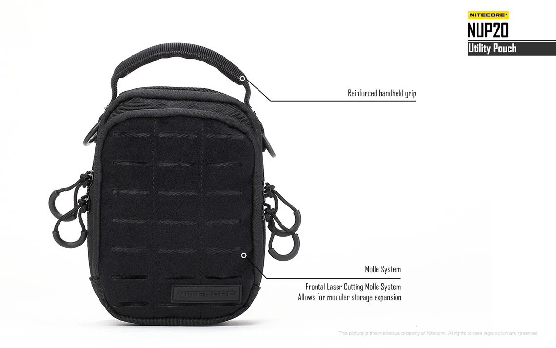 The Nitecore NUP20 utility pouch features a high strength, but light weight construction, consisting of military-grade 1000D Cordura nylon.
