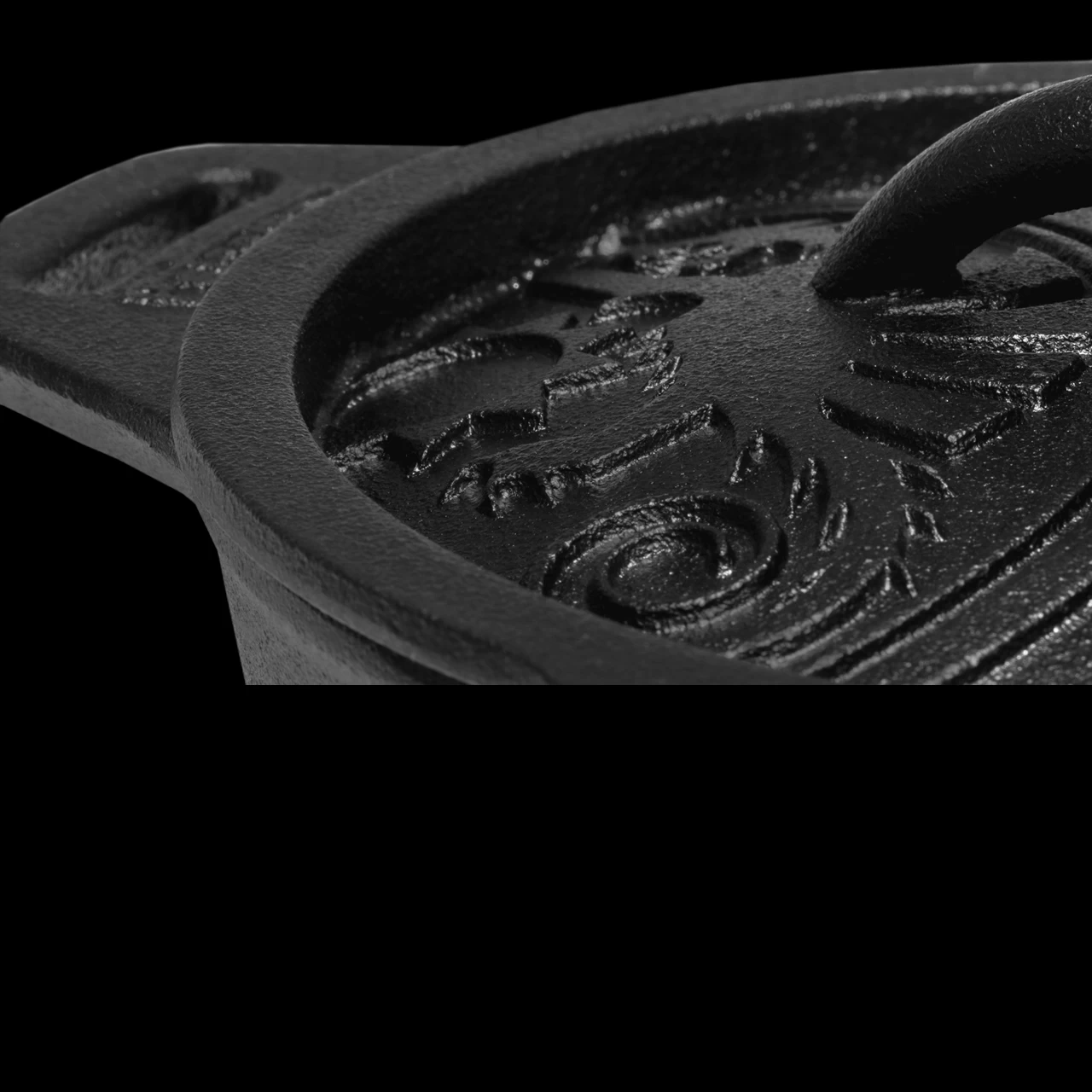 The curved lid has a raised, dotted surface structure. Steam rising in the pot condenses inside the lid and is evenly returned around the dots, to the food thanks to the clever “aroma moulding” design. Whether meat, fish or vegetables, this pot is designed to develop an intense flavour in your campfire dishes.