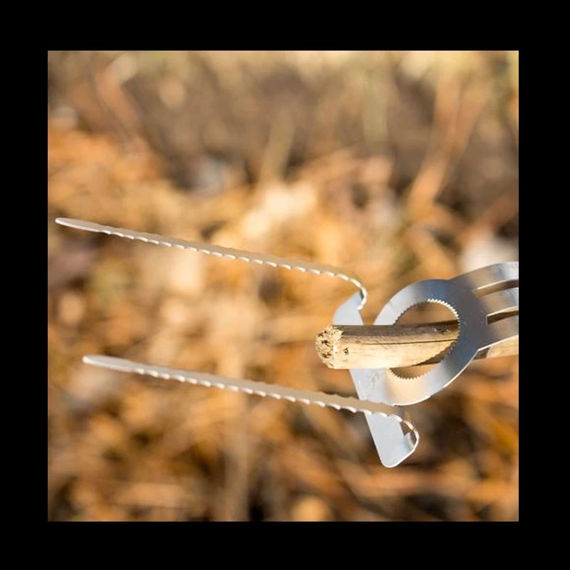 The Readyman Campfire Skewer attaches to any type of stick securely and allows you cook over a heat source. It’s limited to your imagination but here are some ideas: