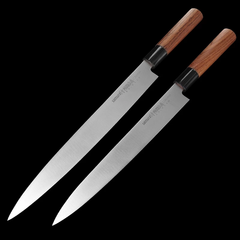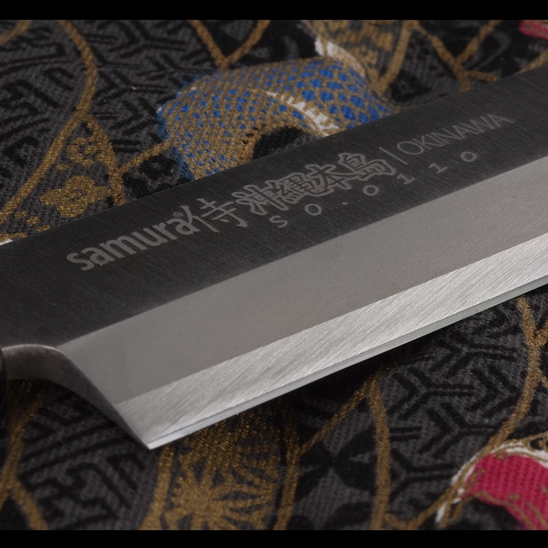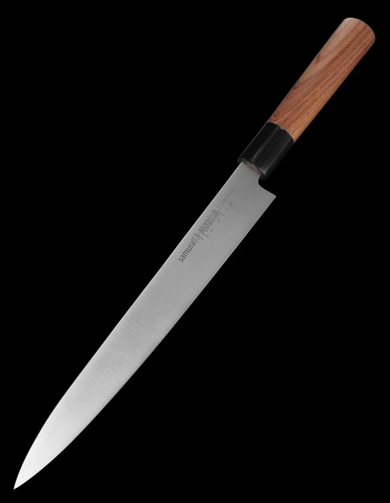 The Samura Okinawa Yanagiba is an example of external beauty combining outstanding functional characteristics and performance. It is forged from corrosion-resistant, super hard AUS-8 Japan steel.