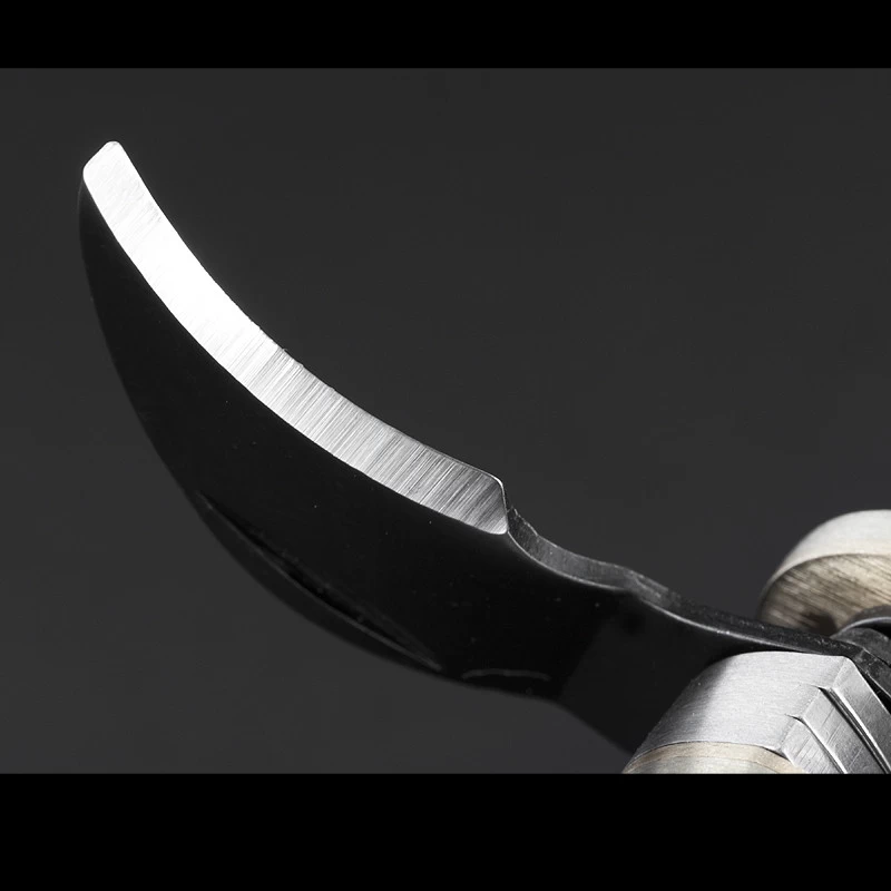 The folding blades are stowed in the Delrin handle, which is smartly set off with metal bolsters. The metal backsprings ensure that the blades are held strongly open, but can easily be closed when not in use.