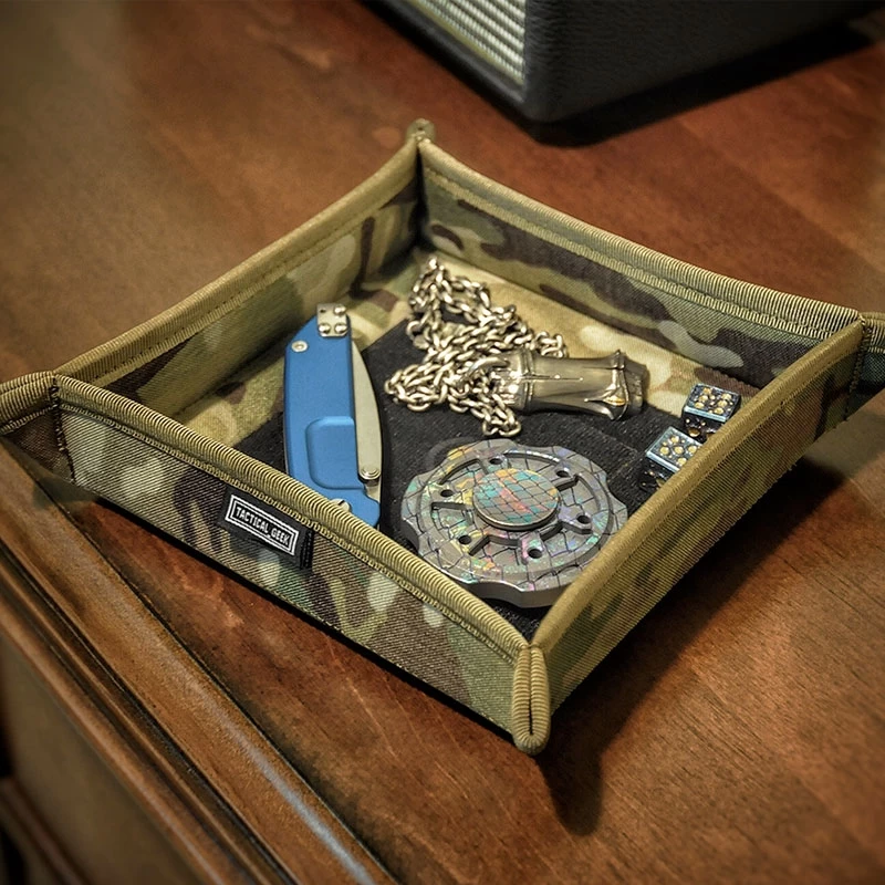 Picture the scene. You’ve finally got your head down for the night after pitching the tent and climbing into your sleeping bag only to roll over and have the contents of your pocket sticking into your thigh. This is where the Tactical Geek Volume 8 Valet Tray comes into it’s own. All your small change and bits and bobs can be securely stored safe in the knowledge that they won’t roll under your rucksack, a shoe or your neighbours sock!