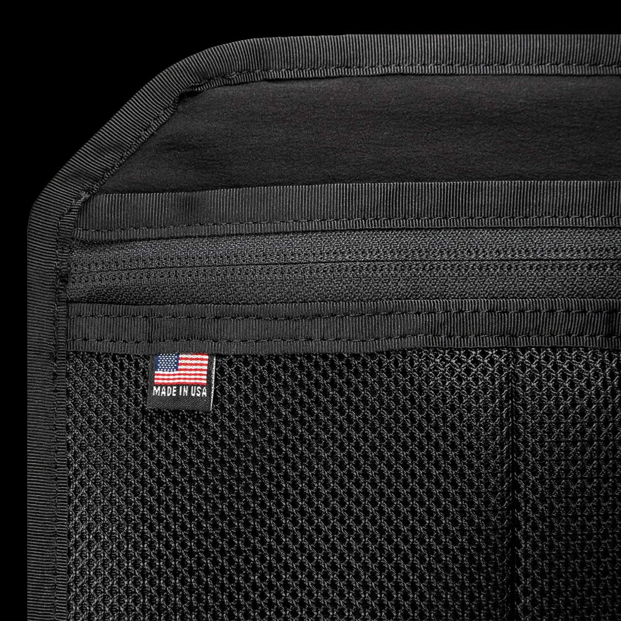 - Two Large Mesh Storage Pockets with Zippered Closure
